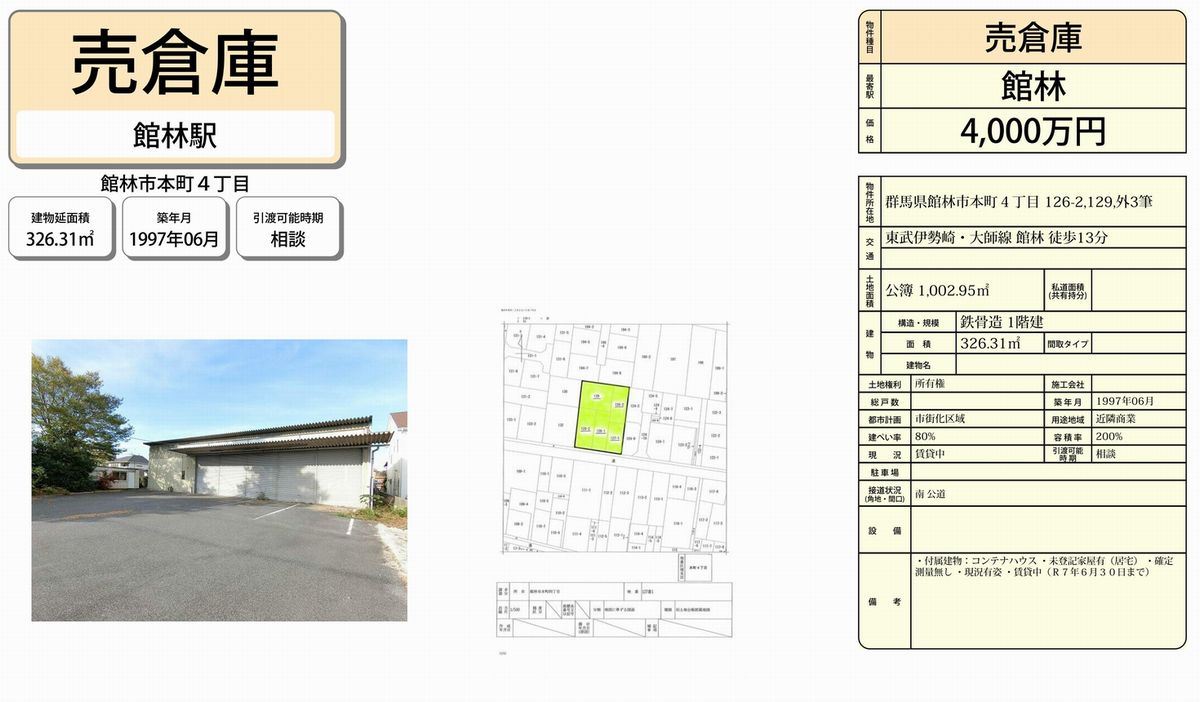 館林市本町4-126-2 (館林) 館林 売倉庫 詳細データ