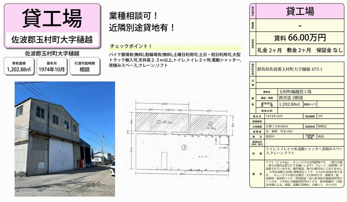 | 物件名 | 玉村町樋越貸工場 |
