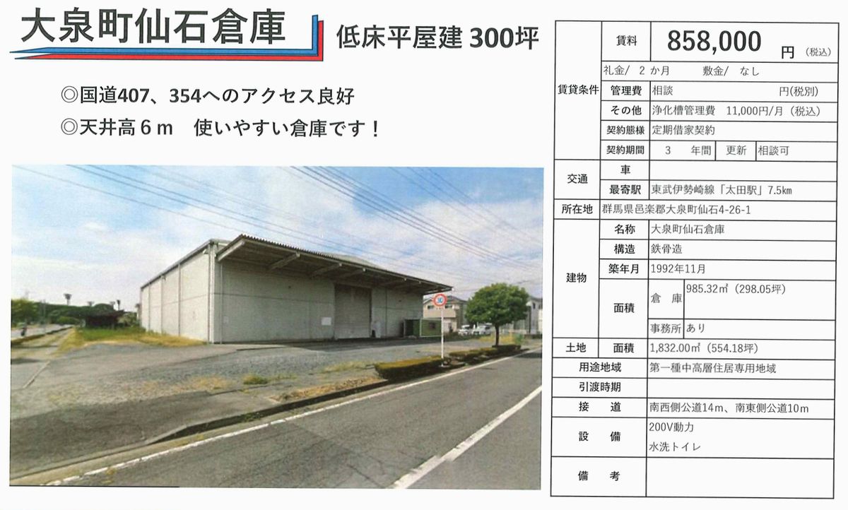 邑楽郡大泉町仙石4-26-1 (太田) 大泉町仙石倉庫 詳細データ