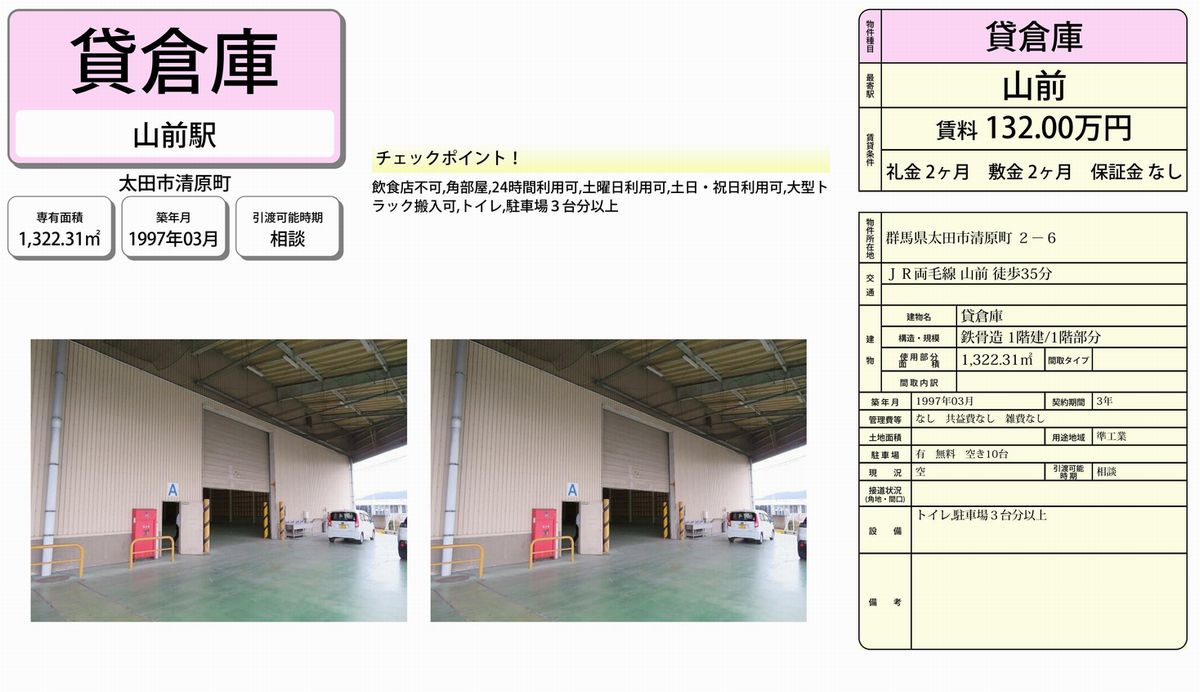 太田市清原町2-6 (山前) 山前 貸倉庫 詳細データ