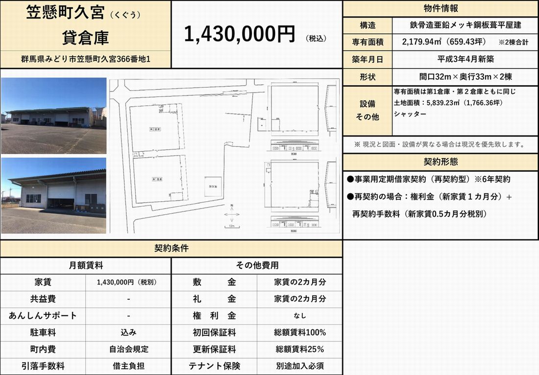 みどり市笠懸町久宮366-1 (国定) 国定 貸倉庫 2棟一括貸 詳細データ